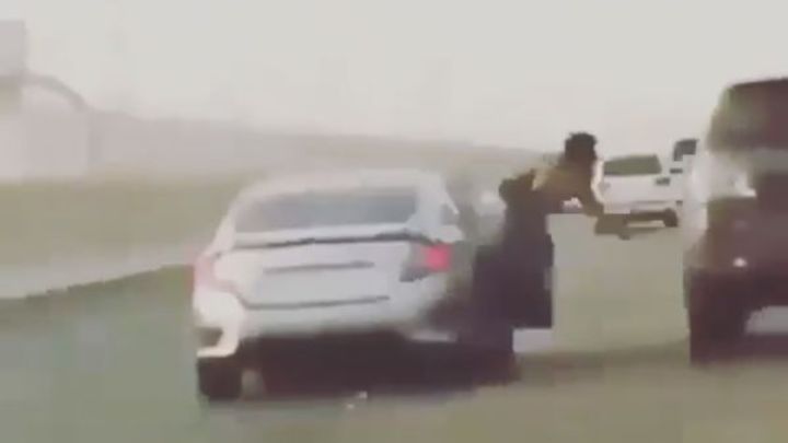 Cayó en plena autopista