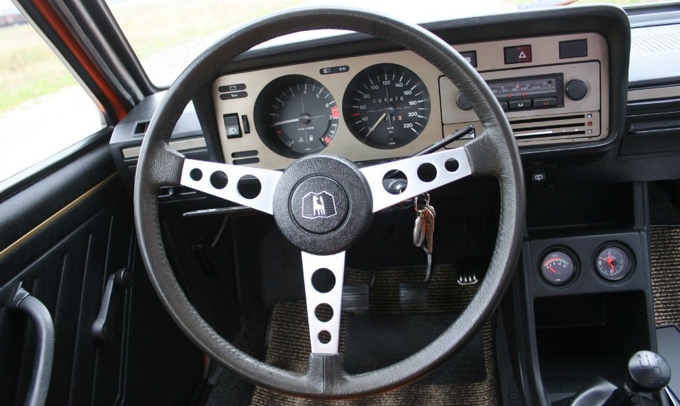 ¿Pero quién necesita música cuando arranca el motor cuatro cilindros situado bajo el capó? Con una mano en el volante y otra en la palanca de cuatro cambios se alcanza una velocidad máxima teórica de 220 km/h, según el tacómetro. Es una exageración porque con sus 85 caballos sólo se llega a 175 km/h.