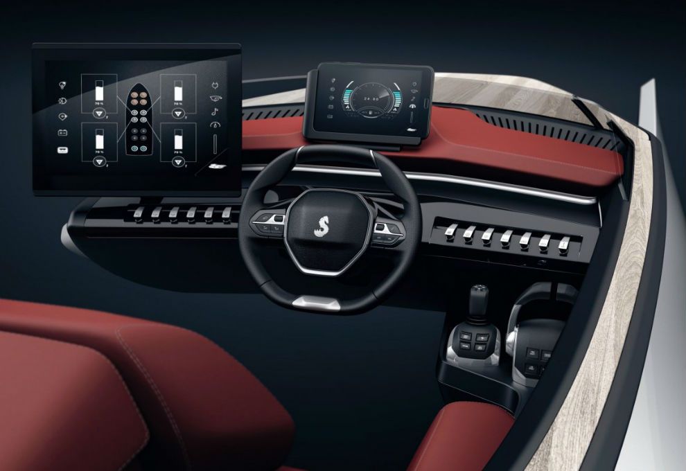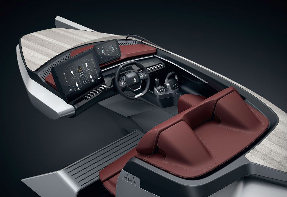 Desde Peugeot Design Lab, aseguran que el diseño interior de Sea Drive Concept mejora la maniobrabilidad de este tipo de embarcaciones y refuerza el confort y la ergonomía de quien las maneja.