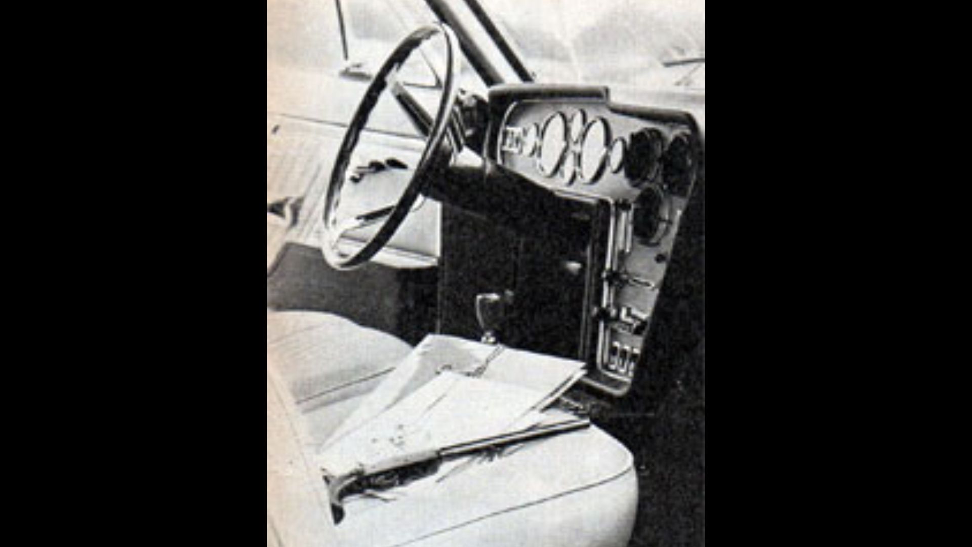 Debajo del tablero se ubicaban interruptores metálicos tipo palanca para diferentes funciones del vehículo, mientras que la consola central incluía reloj, encendedor, controles de calefacción y ventilación, entre otros.