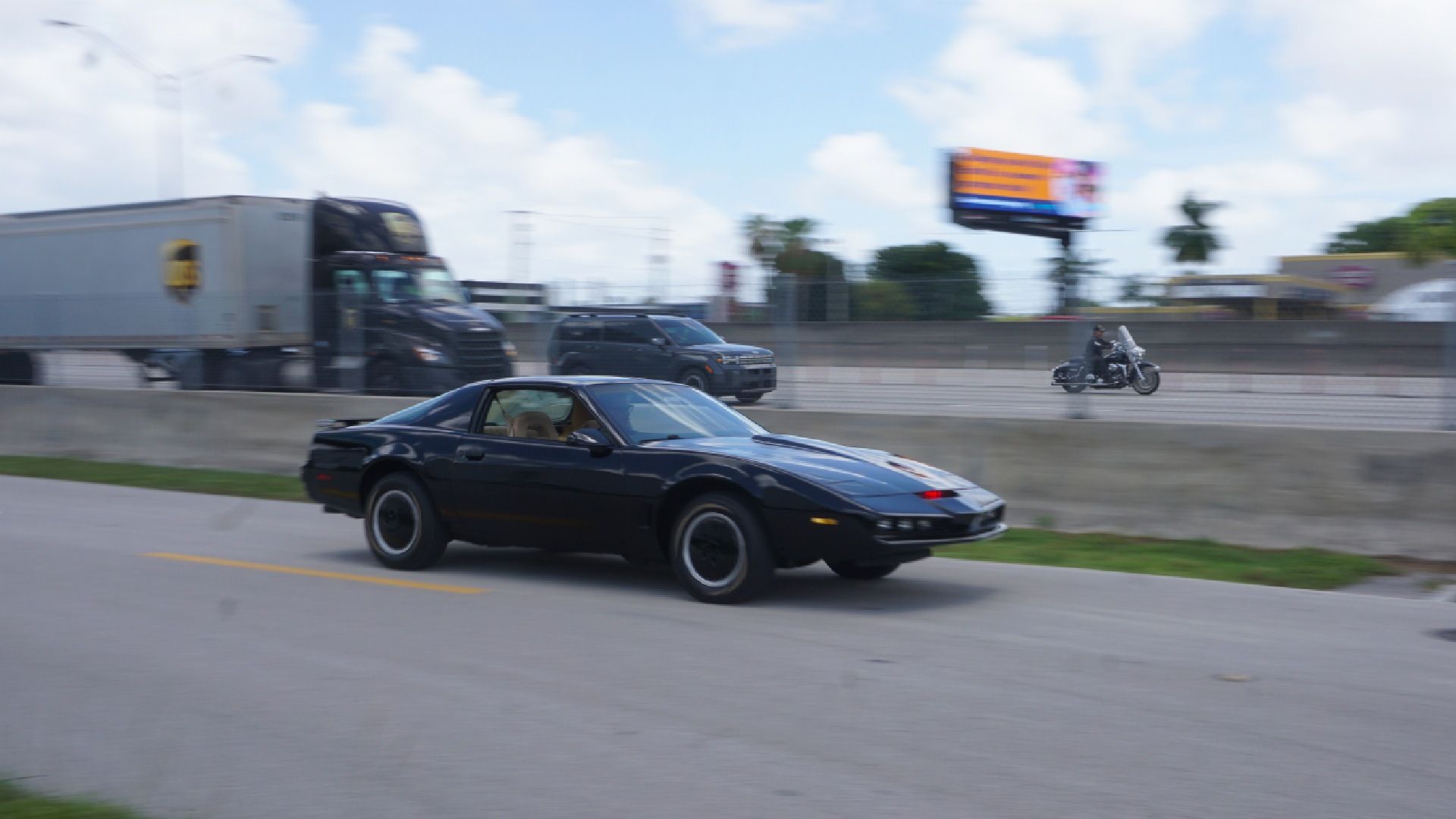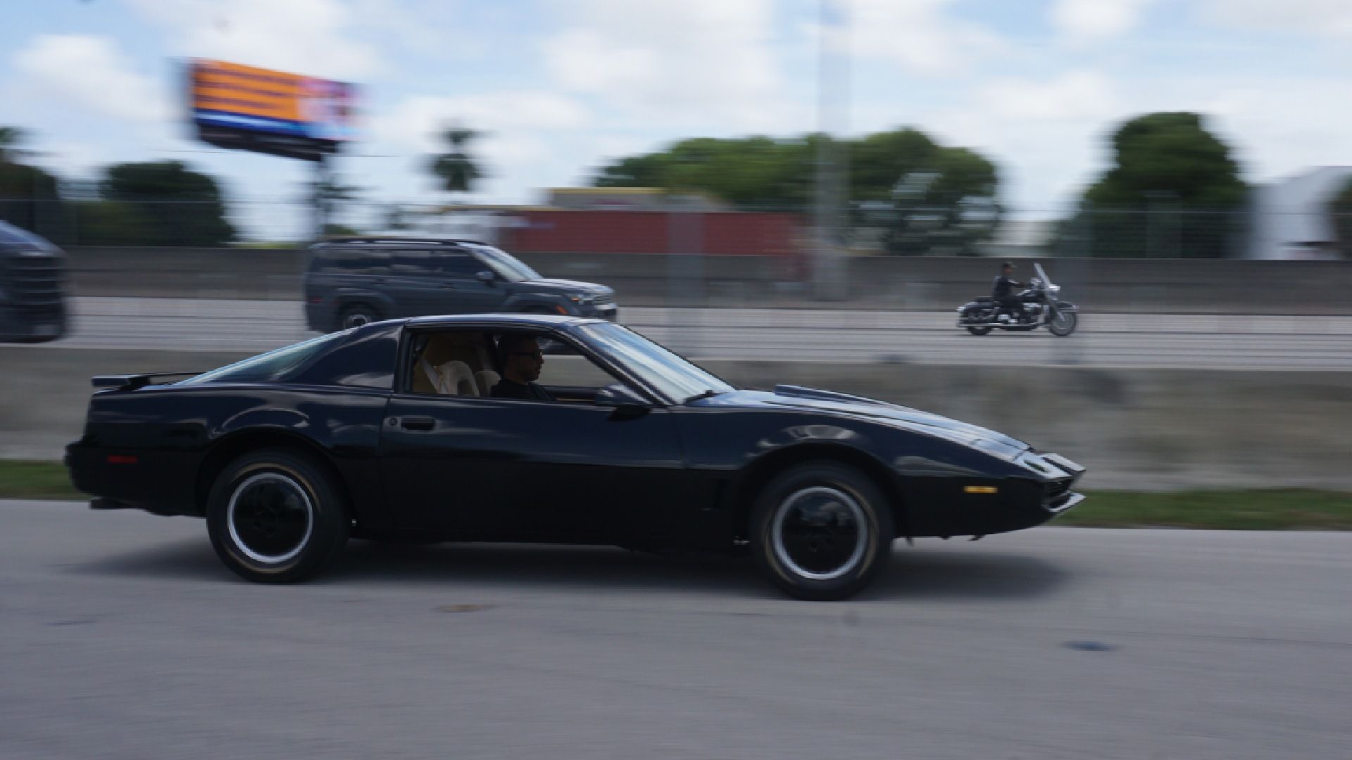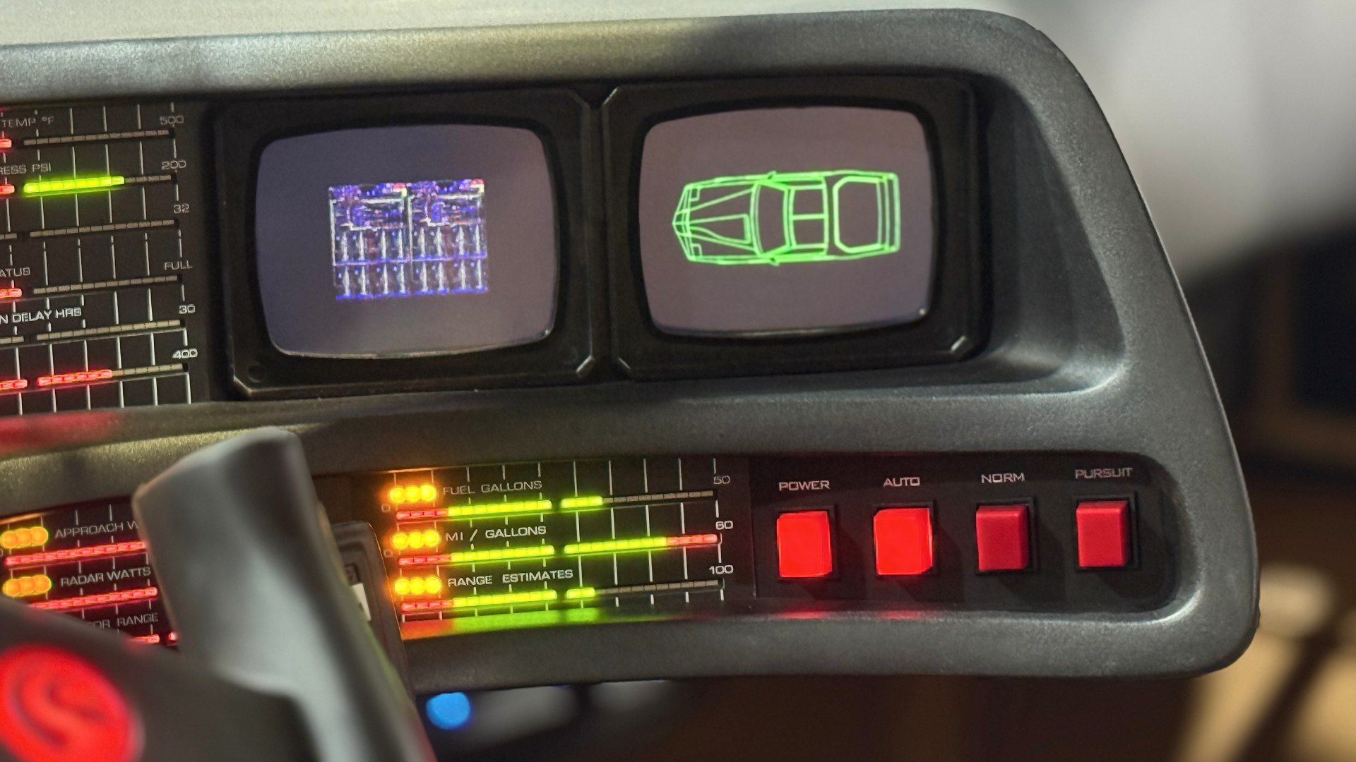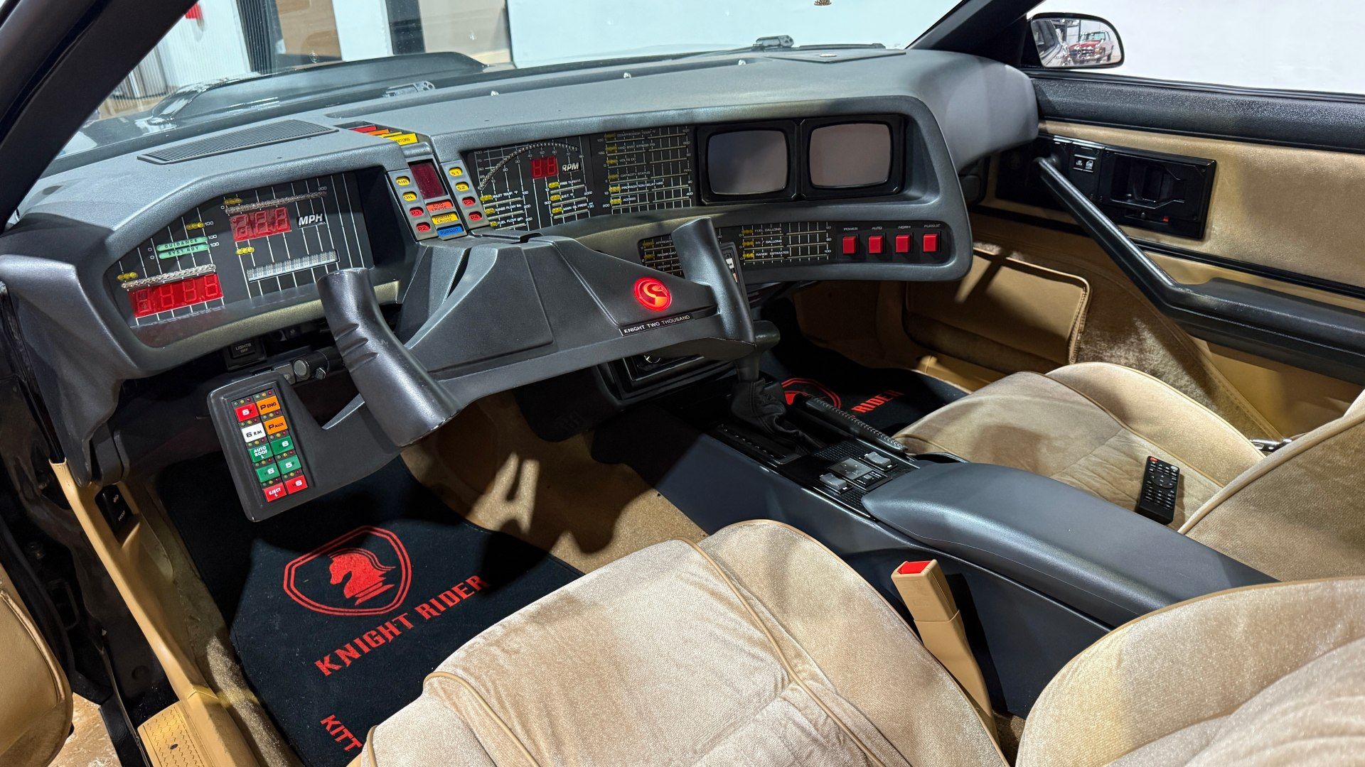 El arranque mezcla sonidos, luces y un pequeño estremecimiento emocional. La postura baja, el volante recortado frente a un tablero que solo puede salir de la mente de un genio, construyen un clima cinematográfico. En movimiento, el Trans Am revela su esencia ochentosa: dirección más pesada, frenos firmes y motor que respira sin intermediarios electrónicos. Es un auto que pide manos, que exige presencia. Y quizá por eso la experiencia resulta tan potente: no es suave ni digital; es física. Intento no tocar algunos botones como el “asiento eyector” por el bien de mi acompañante ni el de arrojar aceite para evadir una persecución. Utilizar el comando que cambia la patente podría traernos problemas legales y claro no queremos nada de eso, pero el hecho de ir manejando con todas esas opciones a la vista, hacen que el conductor se sienta invencible.