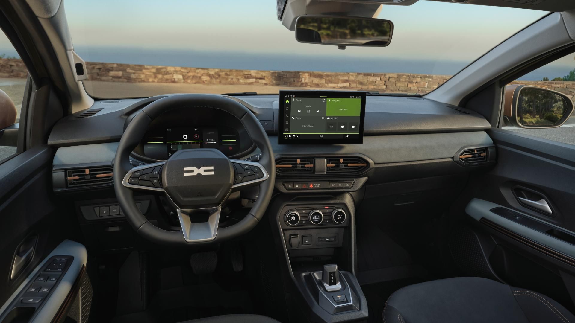 Los nuevos Sandero, Sandero Stepway y Jogger incorporan una nueva identidad visual, marcada por una firma luminosa en forma de “T” invertida con tecnología LED, integrada sobre unas ópticas rediseñadas y una calandra renovada con detalles tipo píxel.