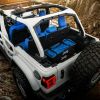 Para incrementar las capacidades, incorpora un kit de elevación JPP de 2 pulgadas, llantas beadlock de 17 pulgadas de Mopar con neumáticos para barro de 37”, paragolpes de acero y aro con Winch Warn y placa protectora inferior de acero para transitar por terrenos complicados.