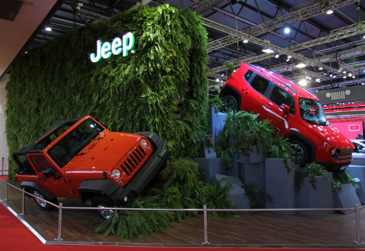 El espíritu del off-road vive en el stand de Jeep. En él se exponen varios productos de la compañía norteamericana que coinciden en enarbolar el pabellón de la aventura. El Renegade es el principal protagonista ya que se espera que se comercialice antes de que 2015 llegue a su fin. Grand Cherokee SRT, Wrangler Sport y Wrangler Unlimited preparado con accesorios Mopar comparten escenario.