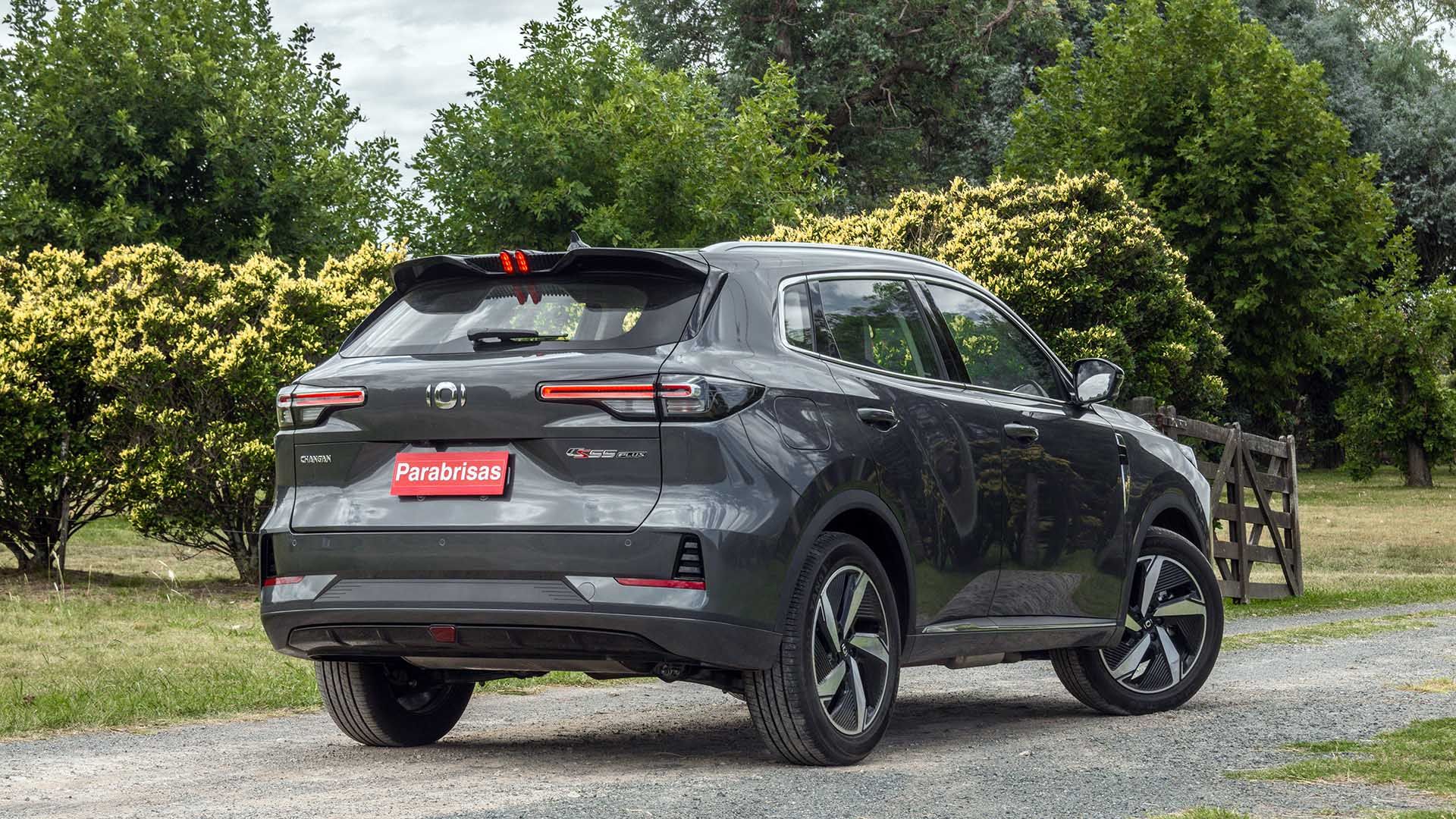 Para el día a día, la dirección es muy liviana gracias a la asistencia eléctrica. También en el ámbito urbano el CS55 se caracteriza por unas suspensiones mullidas que le brindan un andar muy suave, aunque especialmente los de atrás notarán ciertos rebotes al atravesar algunos de los exagerados lomos de burro que las autoridades de turno suelen colocar en las calles. El mencionado confort de marcha sólo se ve interrumpido cuando el eje delantero termina de atravesar algunos lomos de burro que finalizan de manera abrupta. Y al contrario de lo que se podría presuponer, en la ruta va firme y dobla sin demasiados vicios. La clave radica en la pesada batería que, al estar situada en la parte inferior del chasis, reduce considerablemente el centro de gravedad. En este sentido, también hace su aporte la suspensión trasera independiente. El tamaño de los neumáticos –225/55 R19– es correcto para este tipo de vehículo, aunque un perfil un poco más alto no le vendría nada mal, sobre todo teniendo en cuenta la ausencia de la rueda de repuesto.