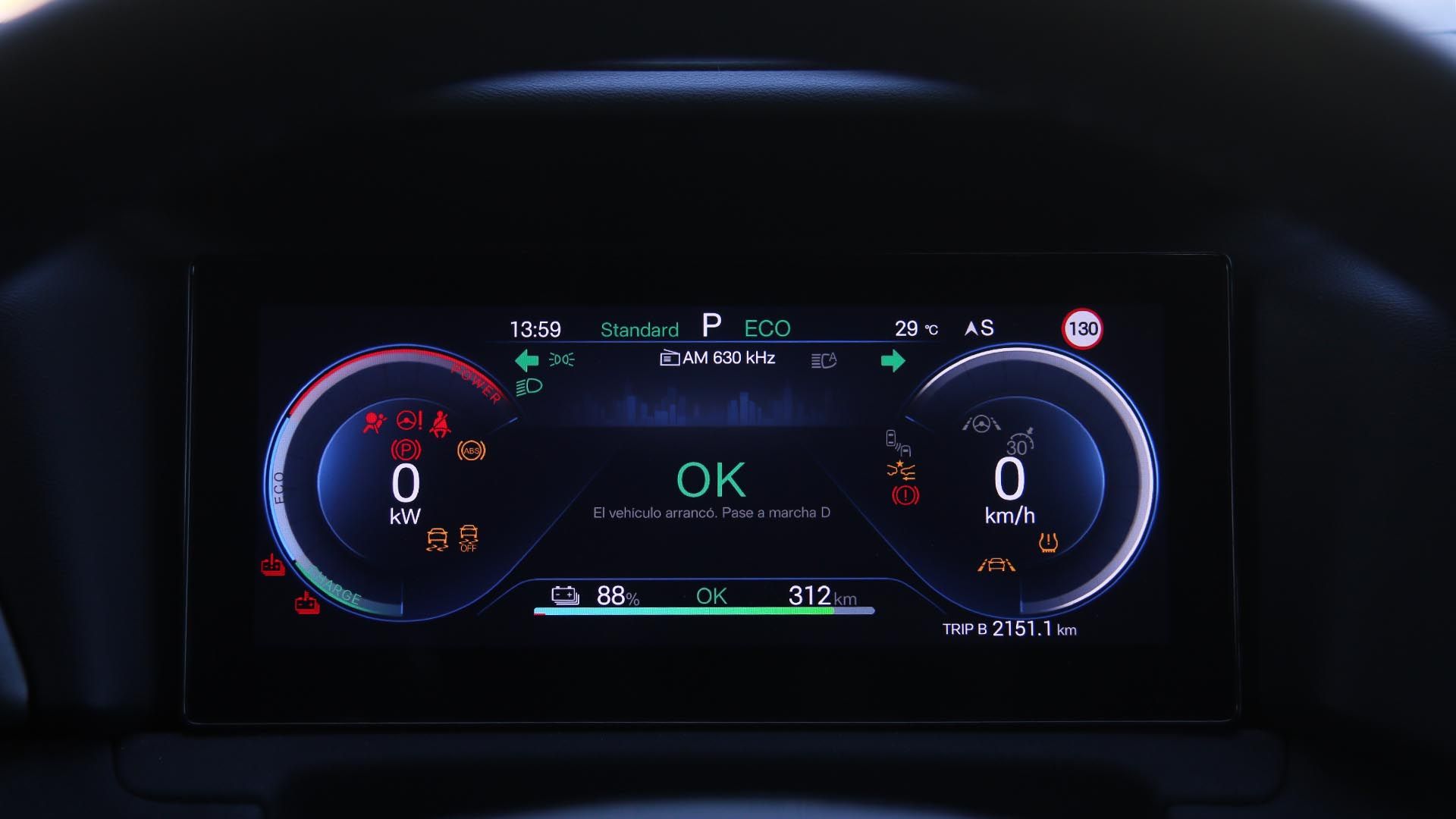 Durante nuestras pruebas de rigor, optimizando la energía en modo ECO alcanzamos los 320 kilómetros en un uso mixto, pero utilizando con ganas el acelerador y con el modo Sport activado, apenas llegamos a los 300 kilómetros, evidenciando un promedio real de 310 kilómetros de autonomía.