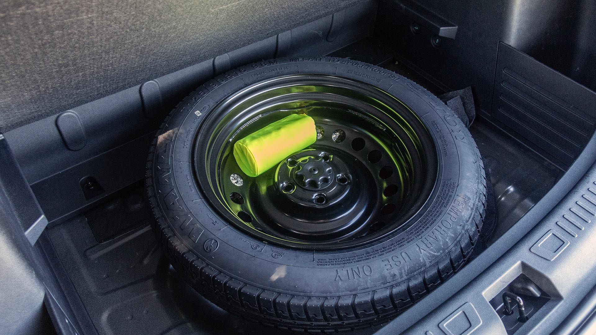 Más allá de las ventajas de tener las baterías ubicadas en el piso, la capacidad del baúl resulta acotada. Apenas 265 litros para acomodar allí bolsos pequeños y el estuche del cable adaptador que viene de serie con el vehículo pero, afortunadamente, debajo del piso aloja una rueda de auxilio temporal, solución que en Parabrisas habitualmente criticamos, pero que es mejor que un kit de reparación.