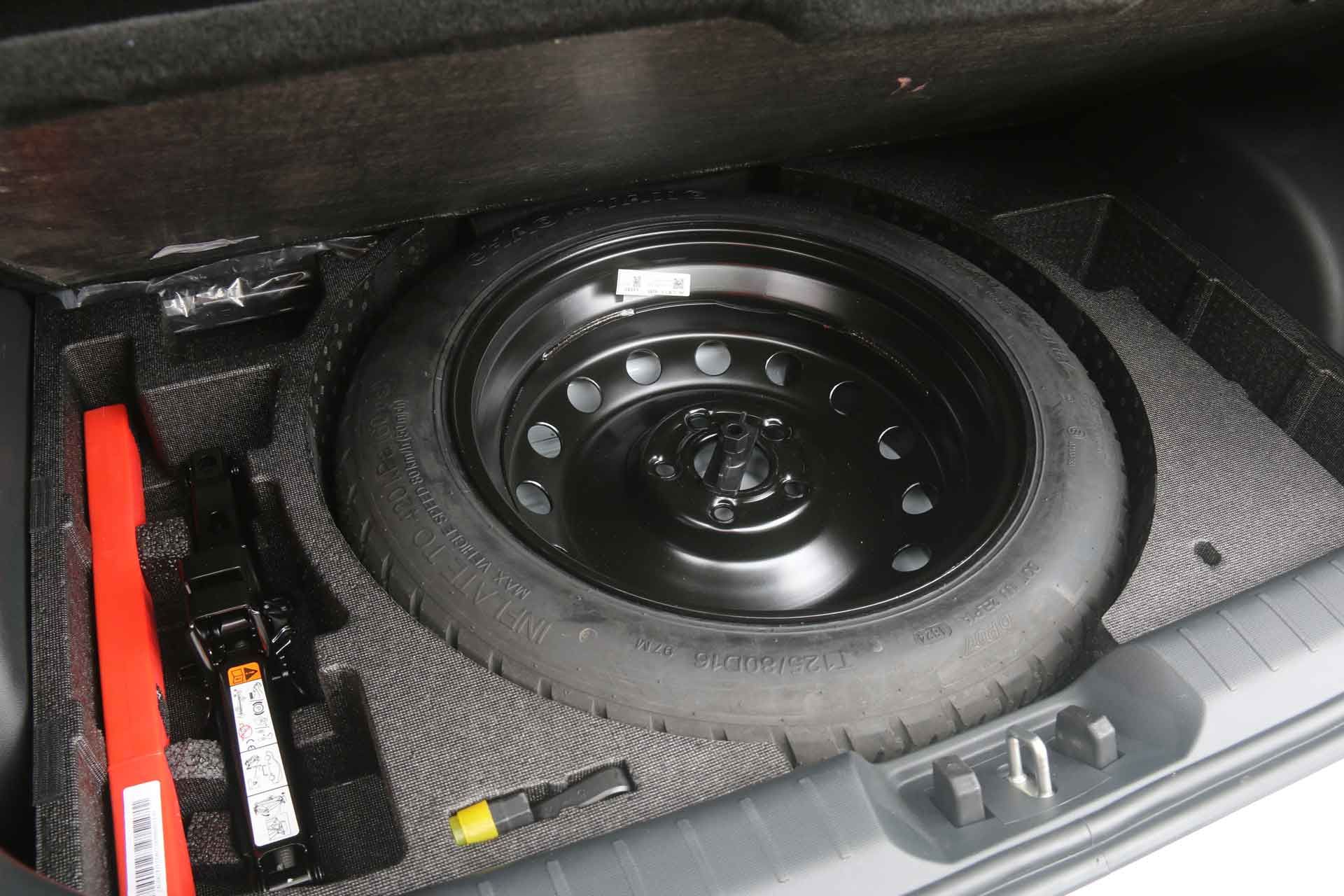 En ese espacio, debajo del cobertor aparece la rueda de repuesto, de uso temporal.