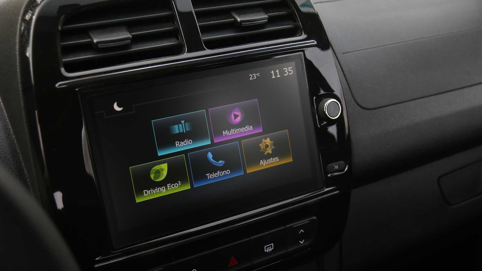 El habitáculo es obviamente diminuto y en las plazas traseras sólo caben dos adultos. Adelante el nuevo panel de a bordo propone un tablero 100% digital y una pantalla táctil, cuyo sistema multimedia permite espejar dispositivos con Android Auto y Apple CarPlay de manera inalámbrica, y además cuenta con cámara de retroceso.