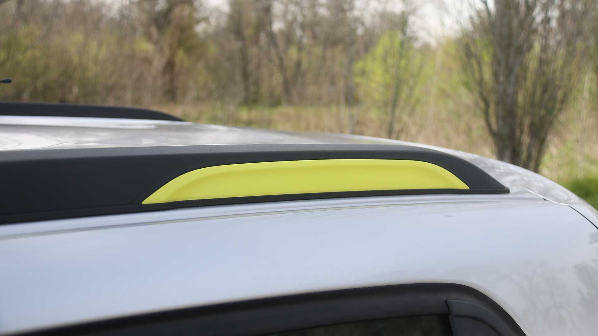 Entre esos elementos se destacan las barras sobre el techo (no están diseñadas para resistir carga ni usarse como portaequipaje), además la tonalidad de las llantas de aleación de 14 pulgadas y el “stripping lateral outsider” y algunos apliques de color amarillo en distintas partes de la carrocería.